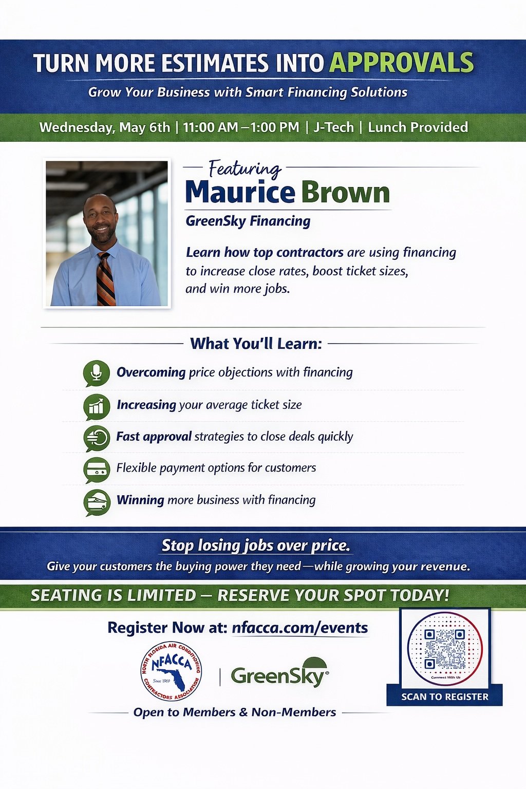 Join NFACCA for a powerful session with Maurice Brown from GreenSky Financing and learn how financing can help you remove barriers, close more deals, and grow your business this summer.